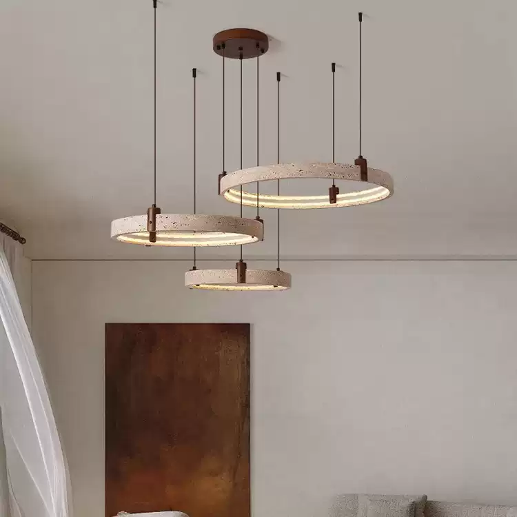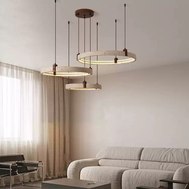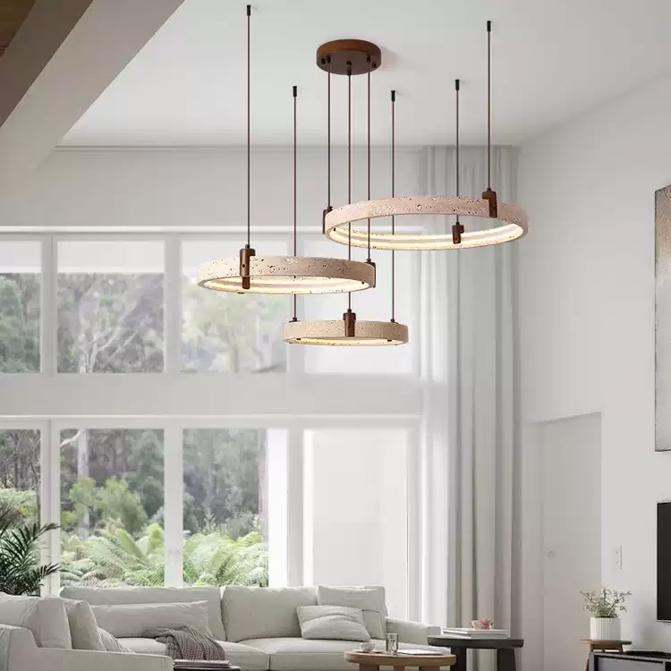 Travertine Ring Chandelier – Modern Rustic Natural Stone Pendant Light for Dining Room & Lining Room