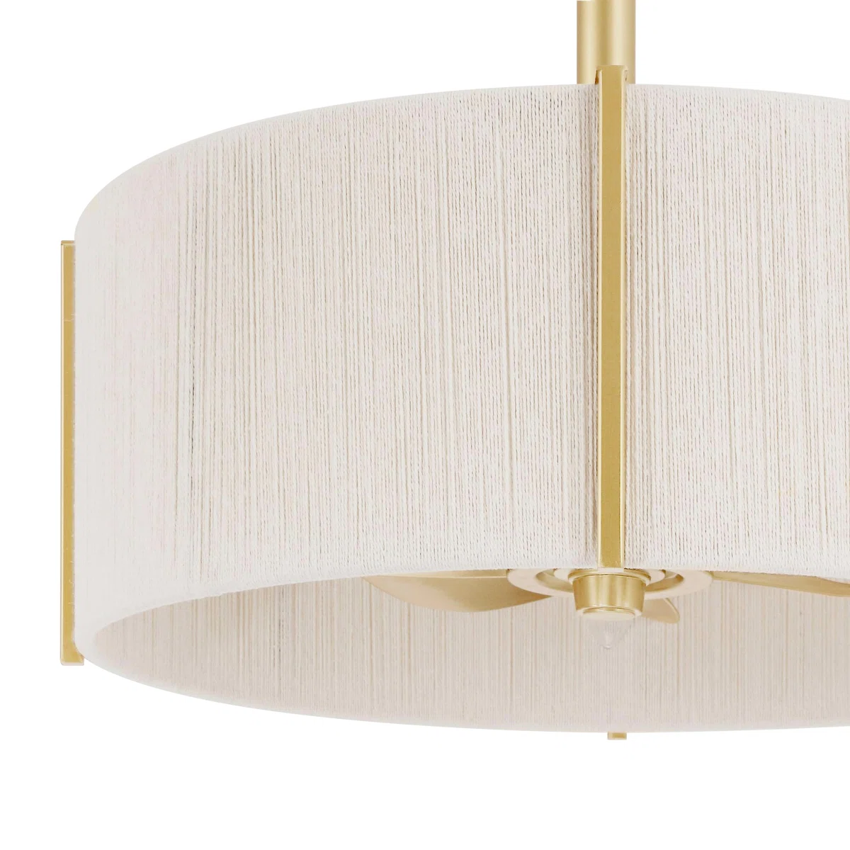 The soul of this Gold Drum Fandelier with Light is its meticulously crafted shade. Instead of cold, hard materials, we use hand-wrapped fabric strings to create a rich, woven texture. This design choice diffuses light into a soft, inviting ambiance, making it a perfect fit for Modern Farmhouse and coastal-inspired spaces where comfort is key.