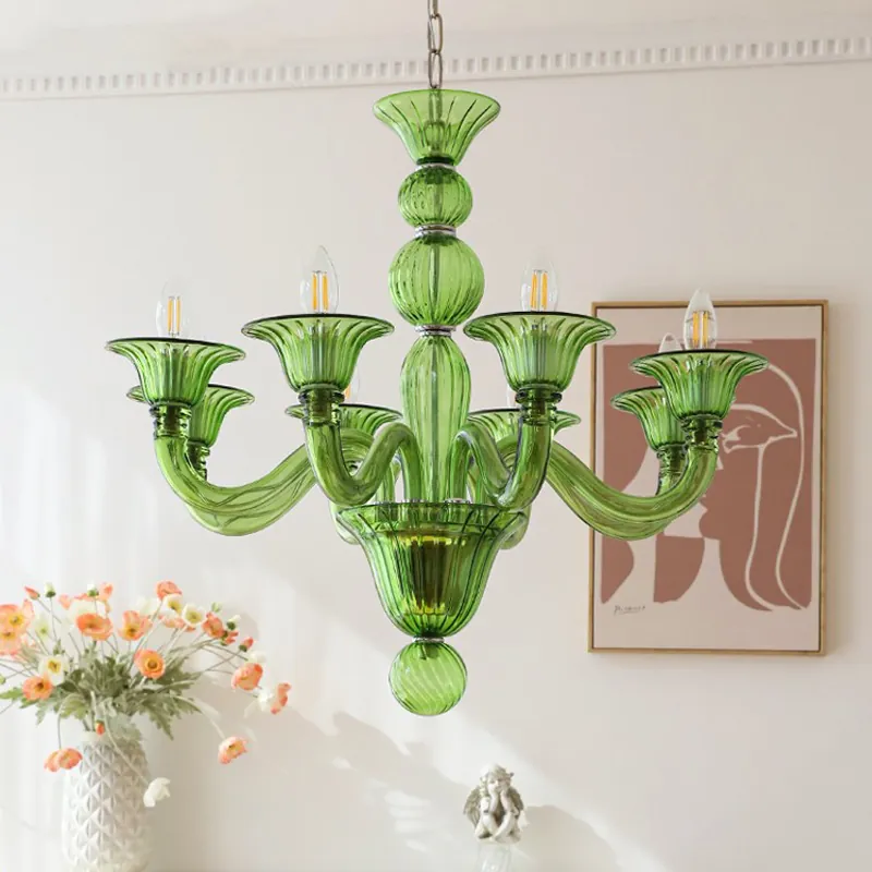 Design Tip: Pair the Green chandelier with dark wood furniture for a moody, sophisticated vibe, or use the Amber version to complement brass accents. For more on the history of glass blowing, visit The Metropolitan Museum of Art.
