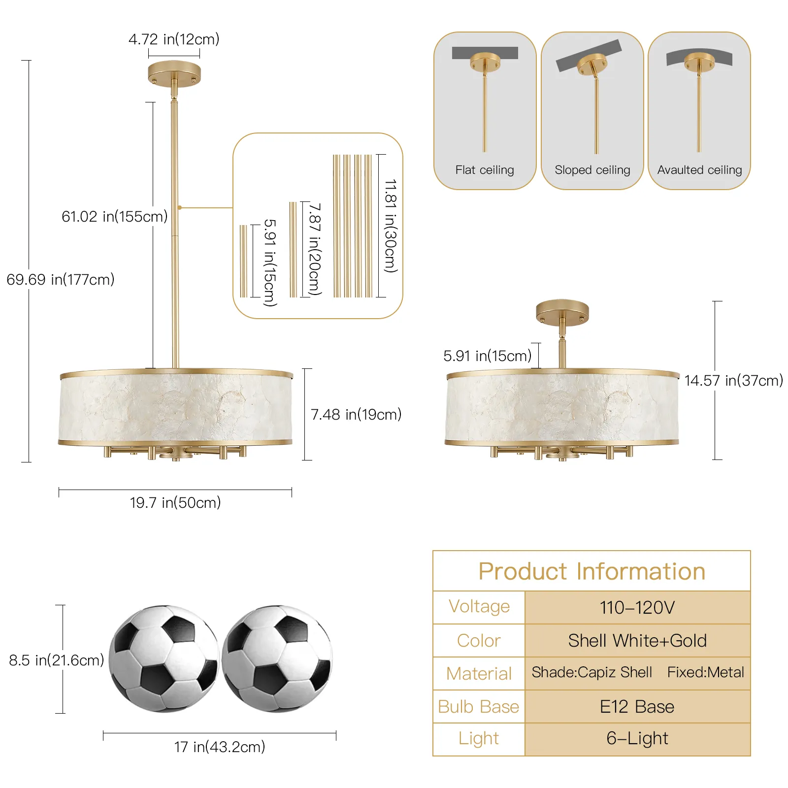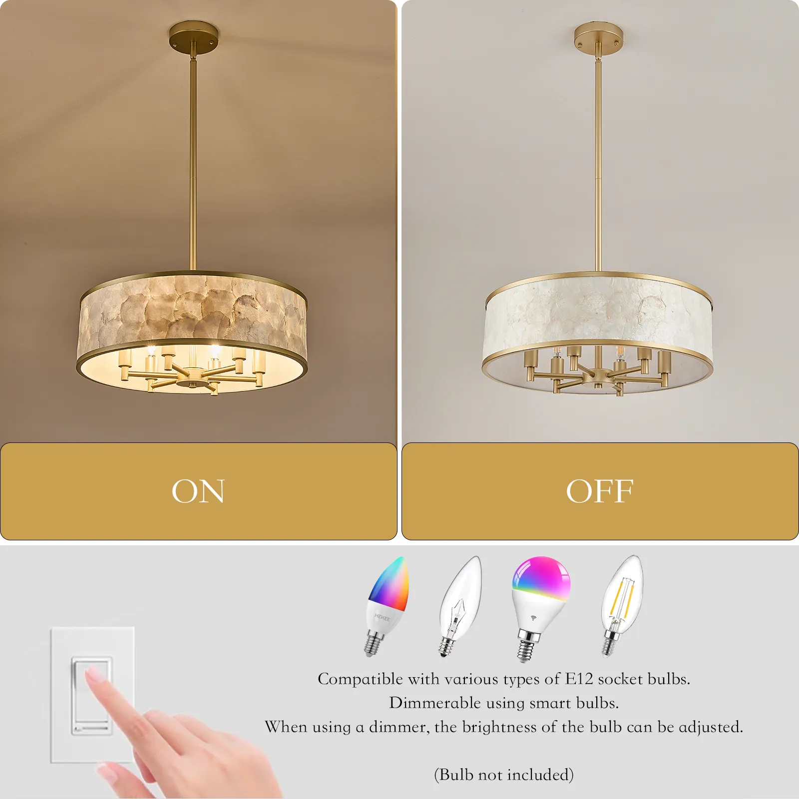 Versatile Sizing: A 19.7-inch diameter makes this Capiz Shell Chandelier the perfect centerpiece for dining rooms, bedrooms, or luxury entryways.