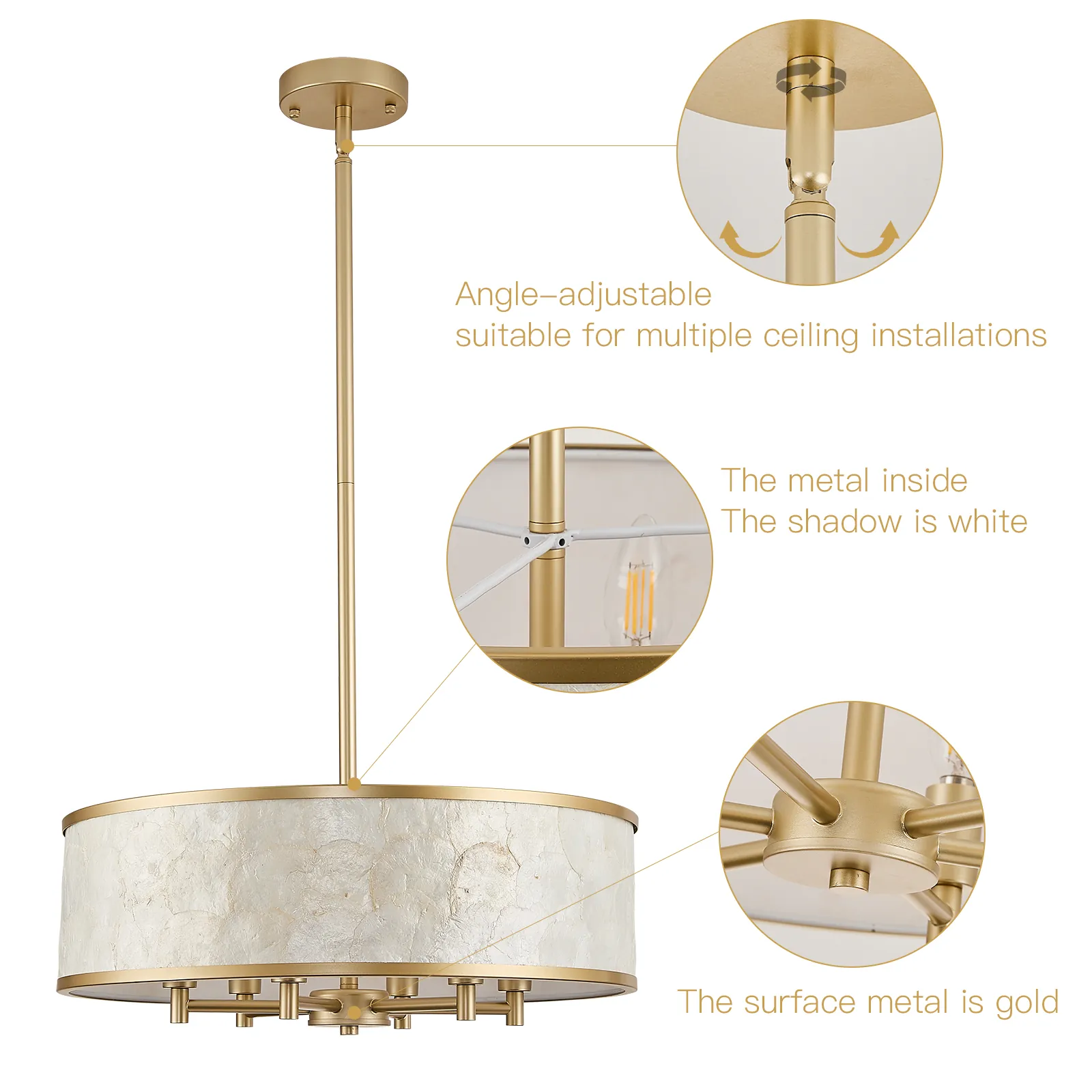 20″ Capiz Shell Drum Chandelier – Modern Gold