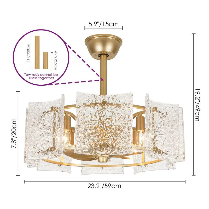 Every home is unique, which is why the Modern Gold Glass Fandelier with Light comes equipped with two distinct downrods. Whether you are installing it in a cozy bedroom with standard ceilings or a grand foyer with high clearances, you can easily adjust the height for optimal airflow and visual impact.