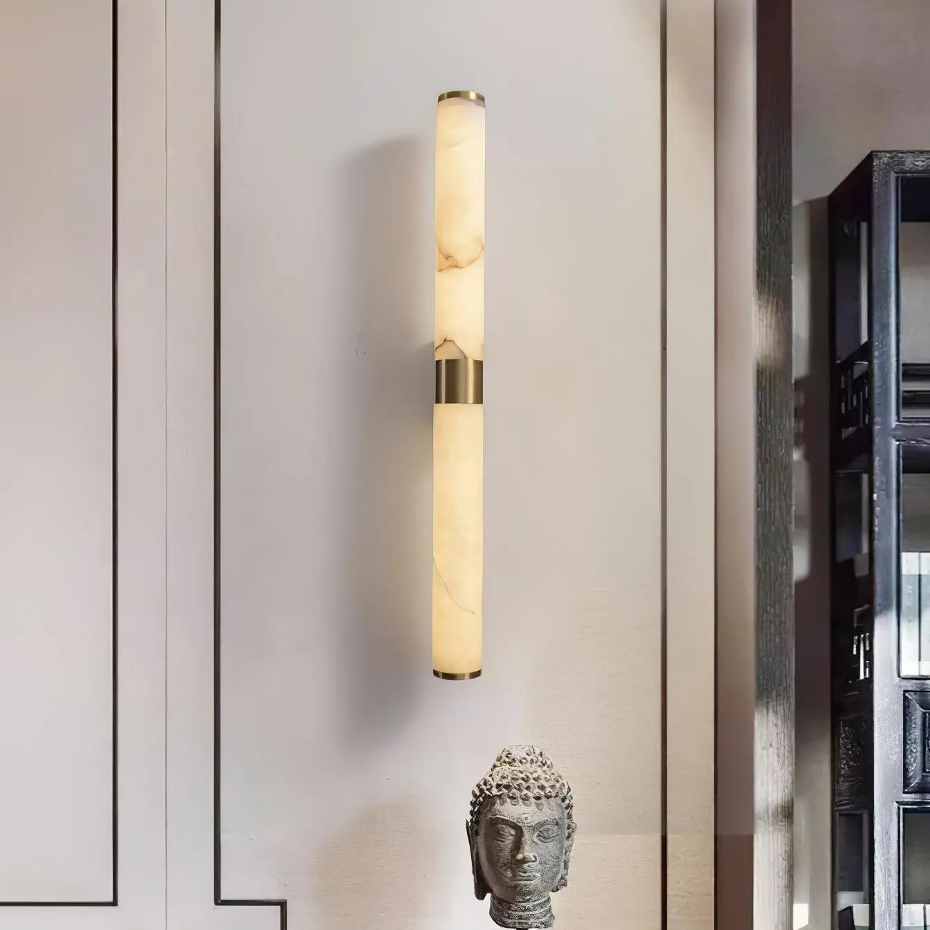 Our Alabaster Brass Wall Sconce is engineered for both style and durability. The integrated LED technology ensures energy efficiency, while the linear silhouette allows for both vertical and horizontal mounting.